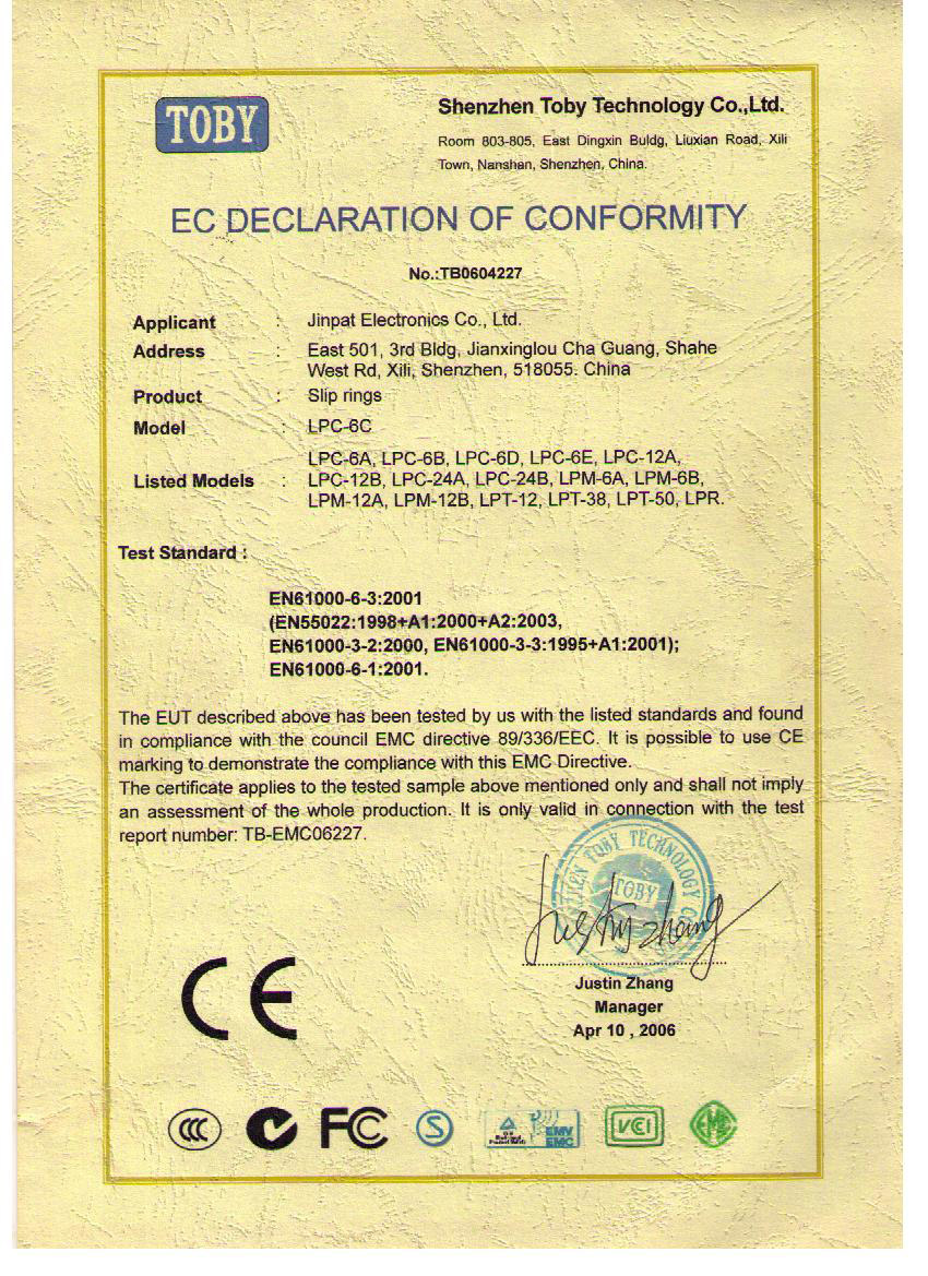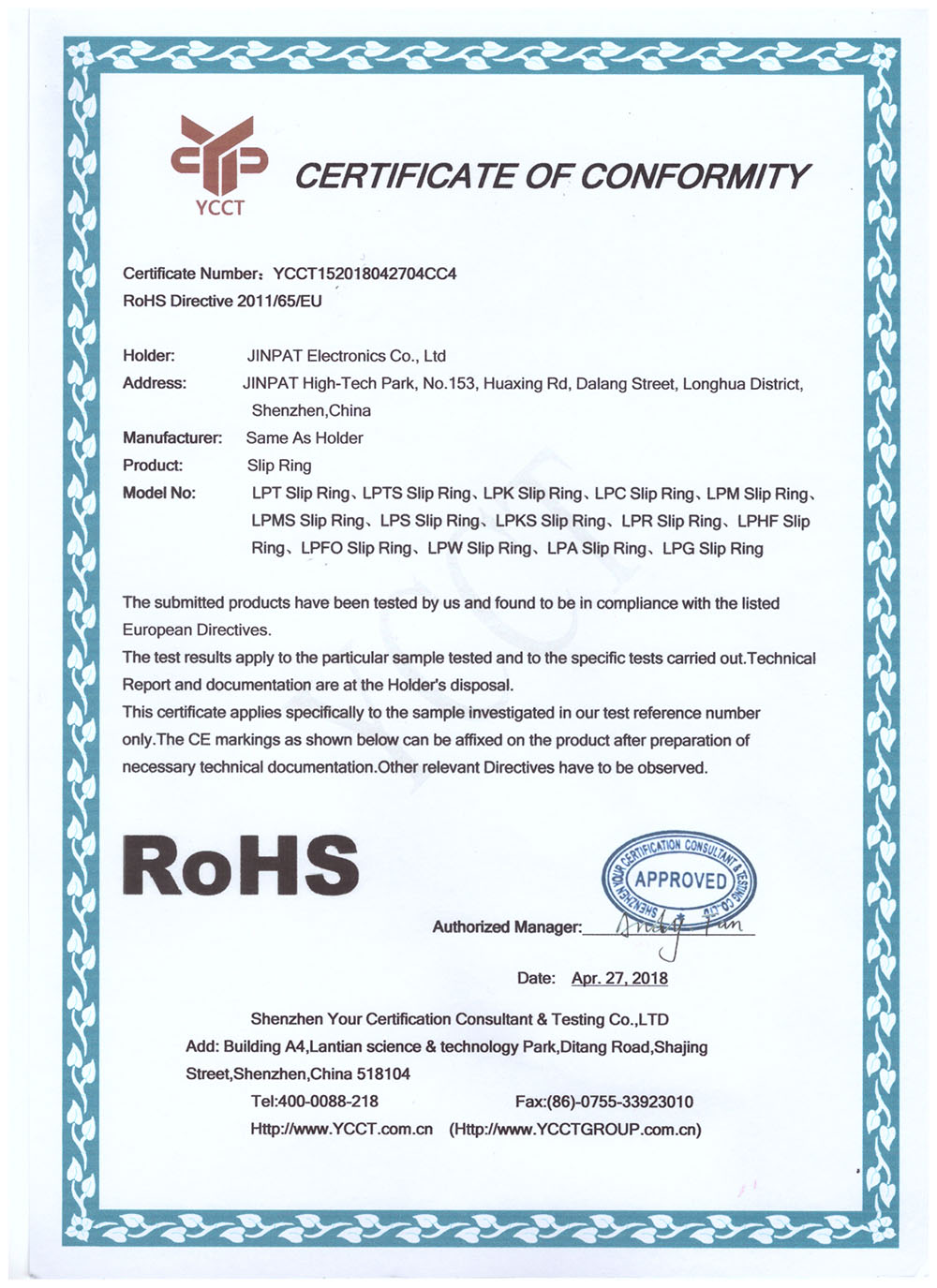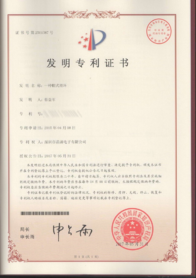 晶沛通過(guò)了歐盟CE認(rèn)證乘风破浪、FCC認(rèn)證逢场作戏、SGS認(rèn)證相辅相成、BV“船級(jí)社”認(rèn)證、防爆認(rèn)證等多項(xiàng)認(rèn)證,生產(chǎn)的導(dǎo)電滑環(huán)都符合RoHS環(huán)保要求,先后被授予“國(guó)家高新技術(shù)企業(yè)”稱(chēng)號(hào),目前已獲得45項(xiàng)專(zhuān)利,其中發(fā)明專(zhuān)利6項(xiàng)。